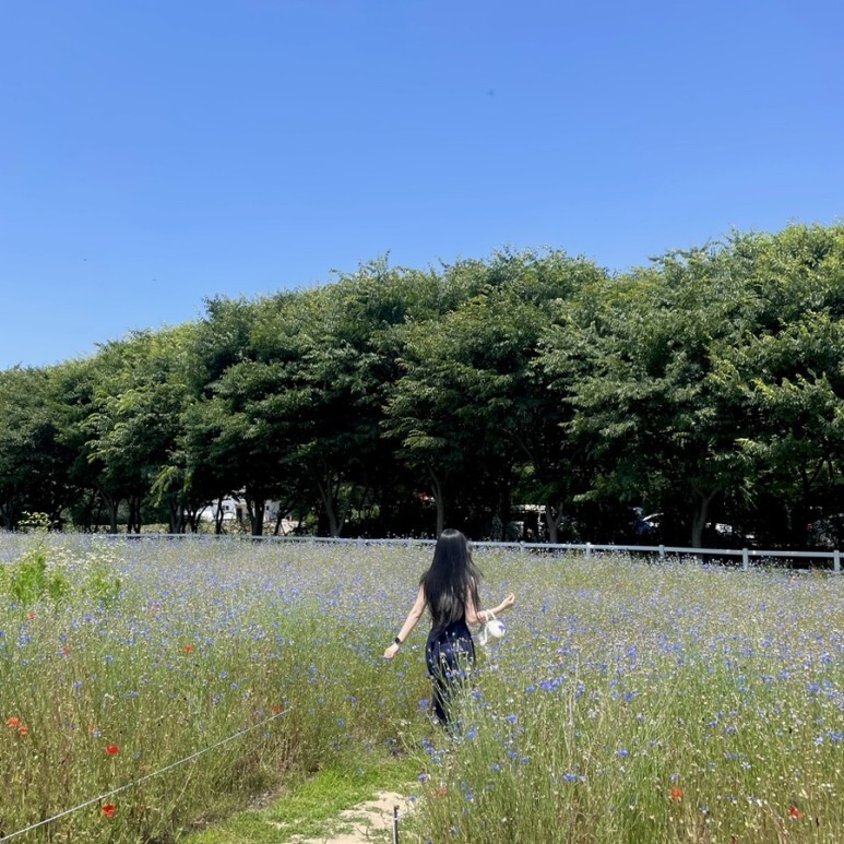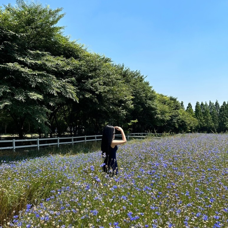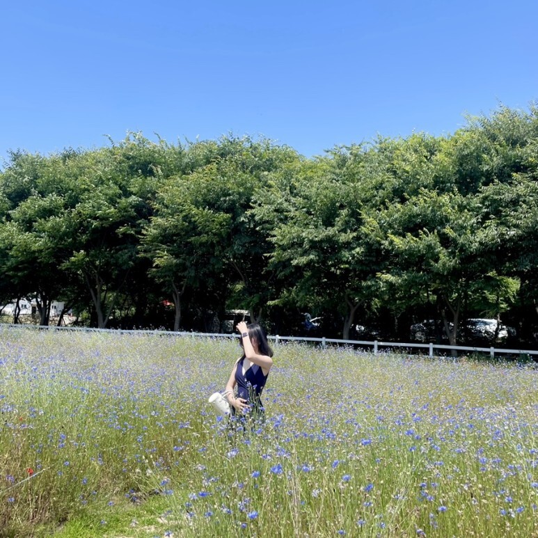 파란 수레국화가 엄청 많이 피어서 사진 찍는데 진짜 너무 예쁘게 나온다