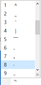 위에 방법이 불가능하다면 다음으로 쉽고 간단한 방법인 "ㄱ + 한자"이다. 넘버패드가 없는 키보드나 노트북을 사용 중이라면 이 방법이 가장 빠르고 좋다. "ㄱ + 한자"를 누르면 아래와 같은 이미지가 나오는데 방향키나 마우스로 스크롤을 내리다 보면 중간쯤에서 찾을 수 있다. 엔터나 클릭 한 번이면 바로 입력된다.
