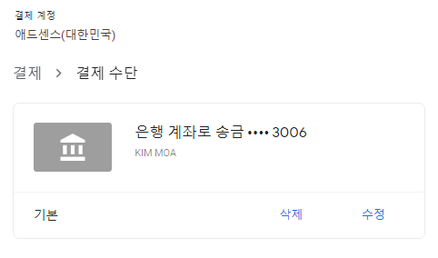 - 3. 세 번째로 은행이름은 애드센스에서 생성된 수익금을 지급받을 은행명을 영문으로 입력하면 된다. (KOOK MIN BANK)