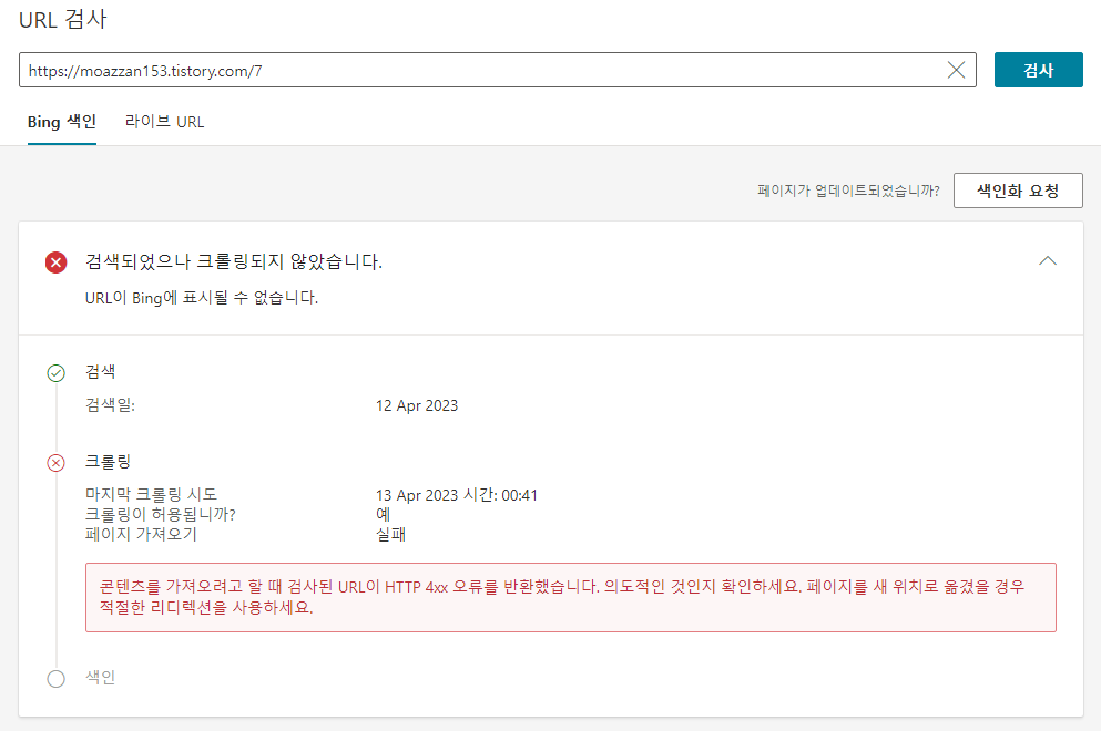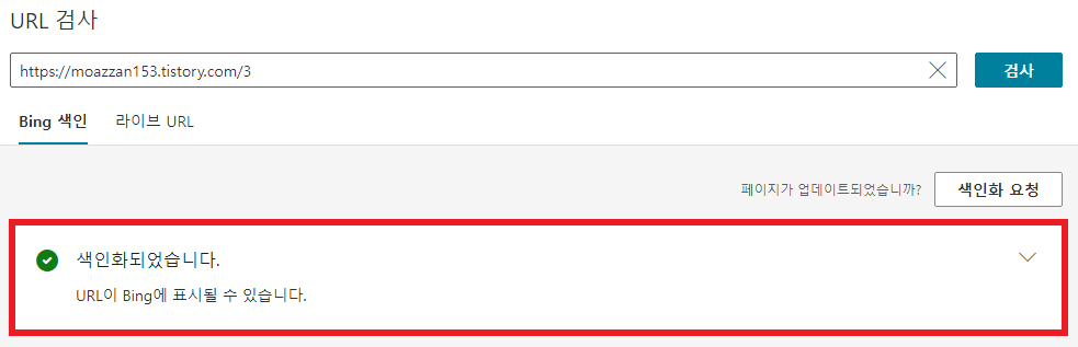 _Bing URL 검사 및 색인 요청